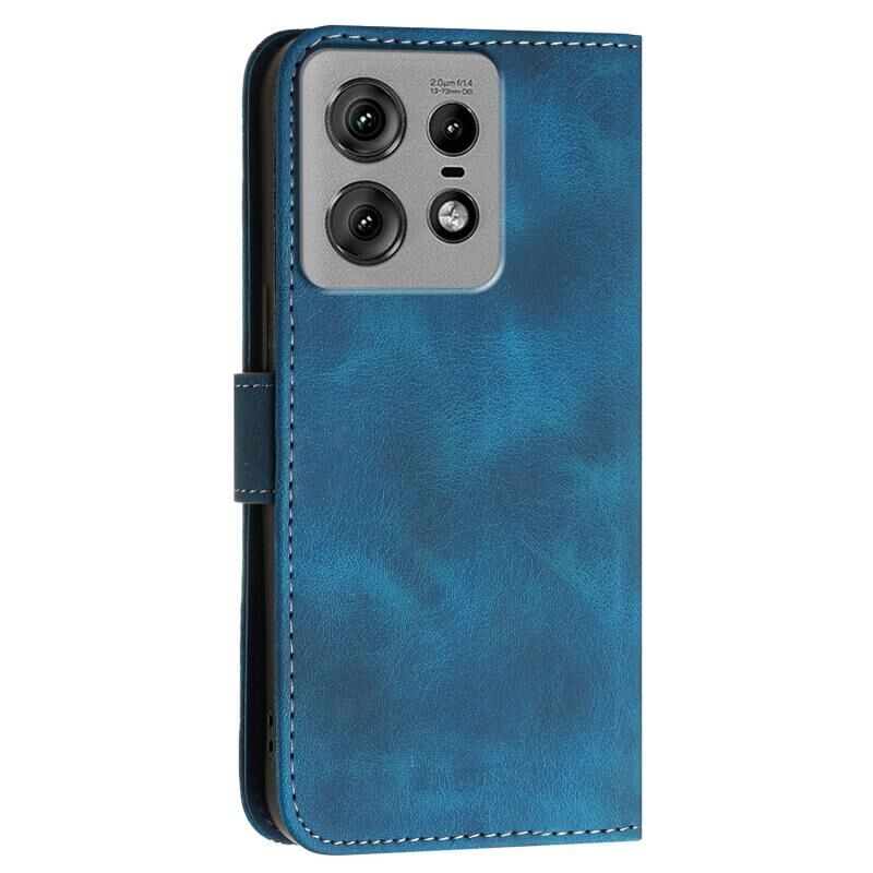Θήκη τηλεφώνου δερμάτινη με ανάγλυφο σχέδιο πλέγματος πεταλούδας για Motorola Edge 50 Pro 5G με κορδόνι (Σκούρο Μπλε)