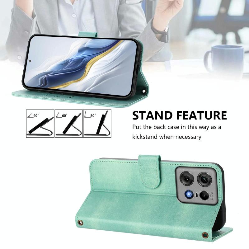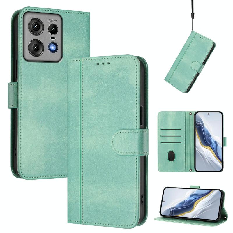 For Motorola Edge 50 Pro 5G Line Splicing Buckle Retro Leather Phone Case(Mint)
