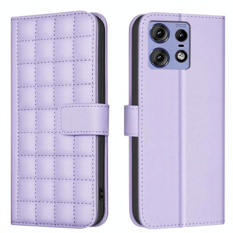 Θήκη τηλεφώνου από δέρμα με τετράγωνη υφή για Motorola Edge 50 Pro 5G (Μωβ)