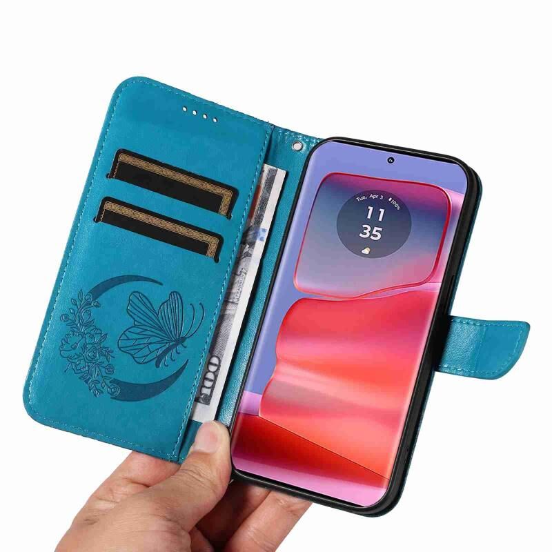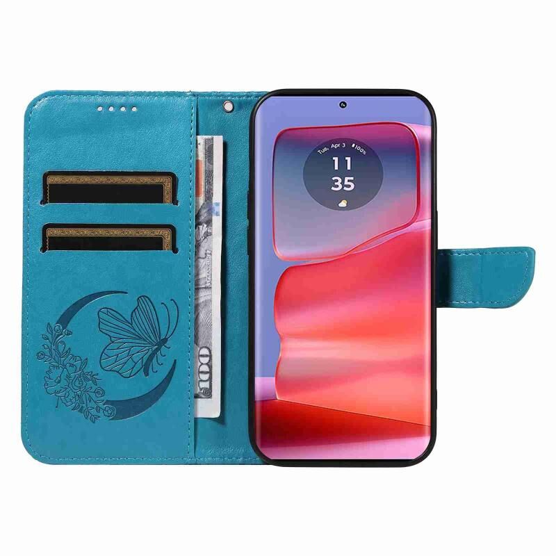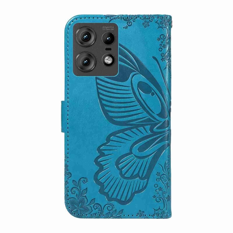 Θήκη τηλεφώνου από δέρμα με ανάγλυφο σχέδιο πεταλούδας Swallowtail για Motorola Edge 50 Pro 5G (Μπλε)