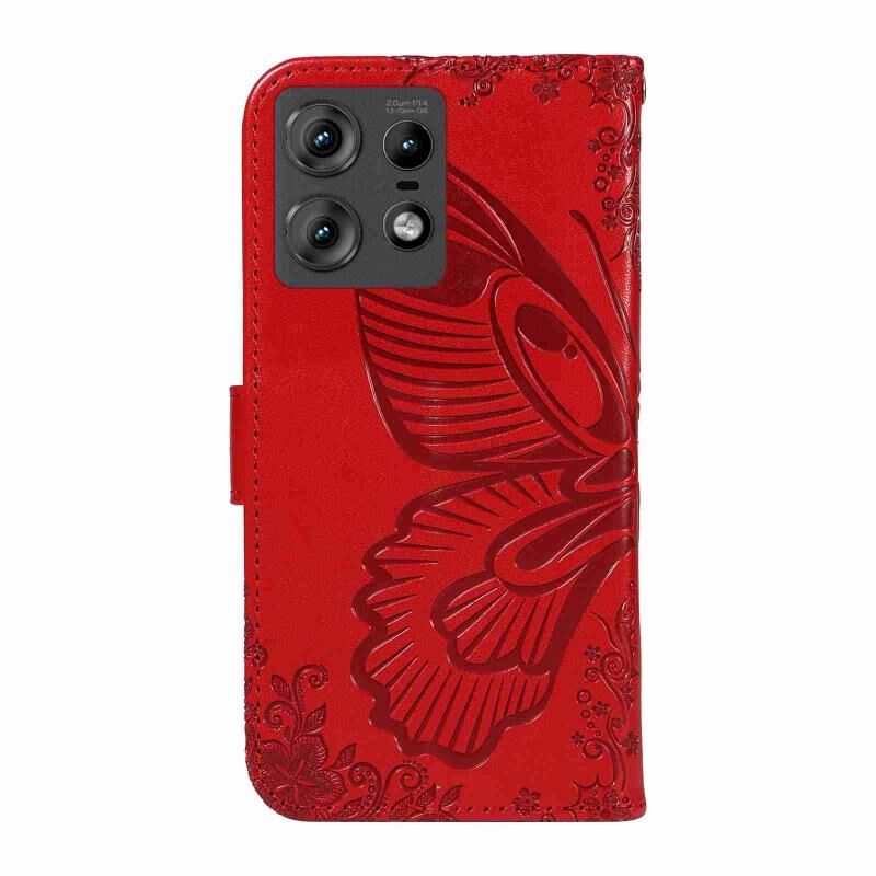 Θήκη τηλεφώνου από δέρμα με ανάγλυφο σχέδιο πεταλούδας Swallowtail για Motorola Edge 50 Pro 5G (Μπλε)
