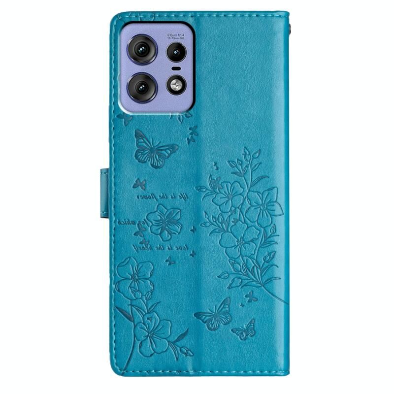 Θήκη τηλεφώνου δερμάτινη για Motorola Edge 50 Pro με σχέδια πεταλούδες και λουλούδια (Μπλε)
