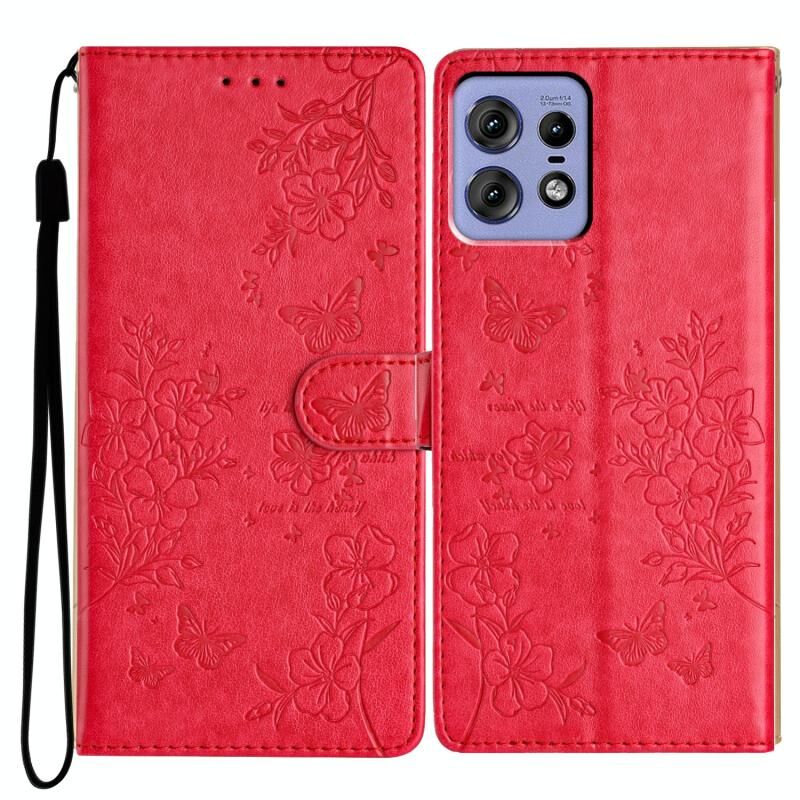 Θήκη τηλεφώνου δερμάτινη για Motorola Edge 50 Pro με σχέδια πεταλούδες και λουλούδια (Κόκκινο)