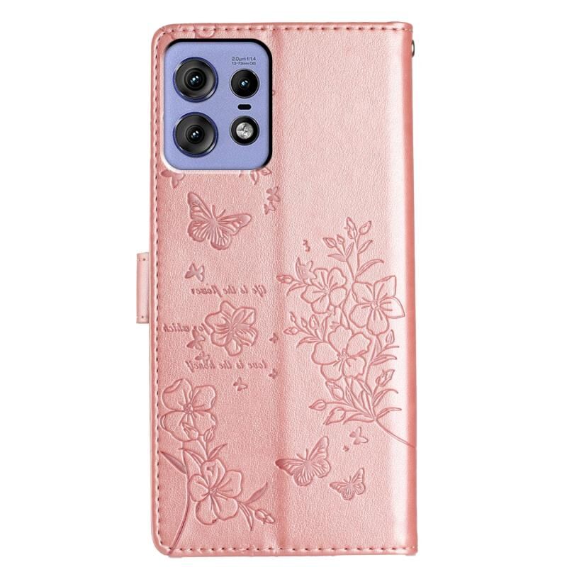 Θήκη τηλεφώνου δερμάτινη για Motorola Edge 50 Pro με σχέδια πεταλούδες και λουλούδια (Ροζ χρυσός)