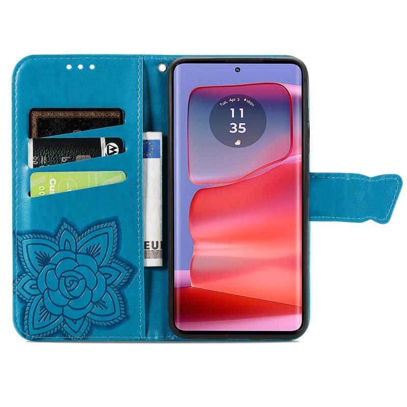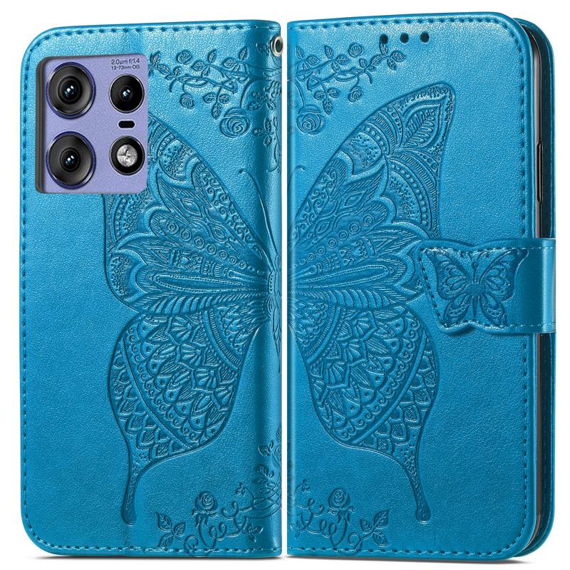 For Motorola Edge 50 Pro Butterfly Love Flower Embossed Leather Phone Case(Blue)