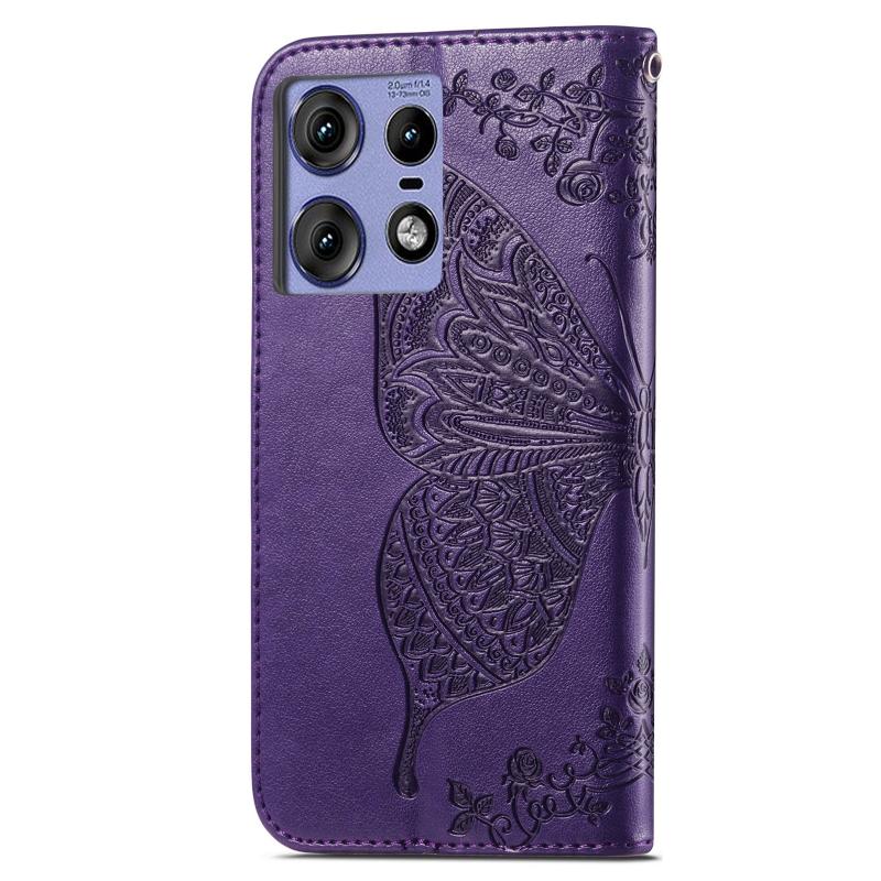 For Motorola Edge 50 Pro Butterfly Love Flower Embossed Leather Phone Case(Dark Purple)