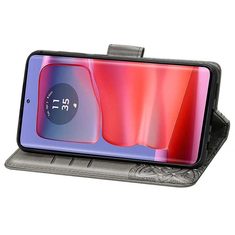 Θήκη τηλεφώνου από δέρμα με ανάγλυφο σχέδιο πεταλούδας και λουλουδιών για Motorola Edge 50 Pro (Γκρι)