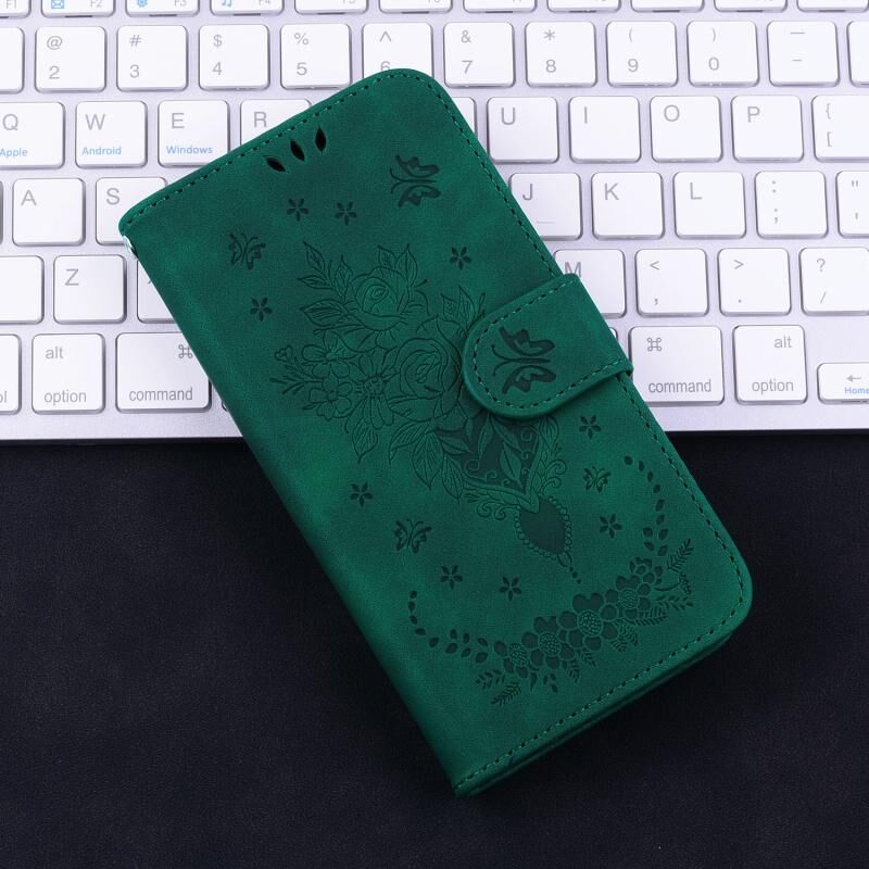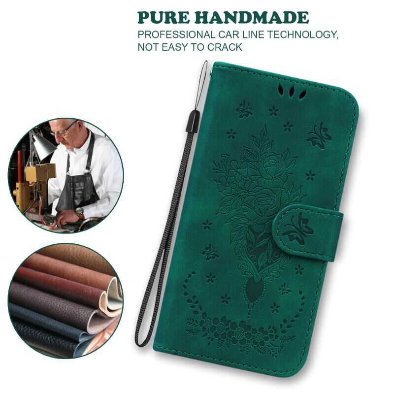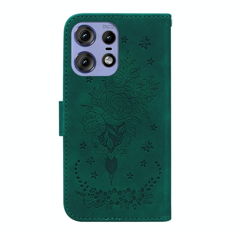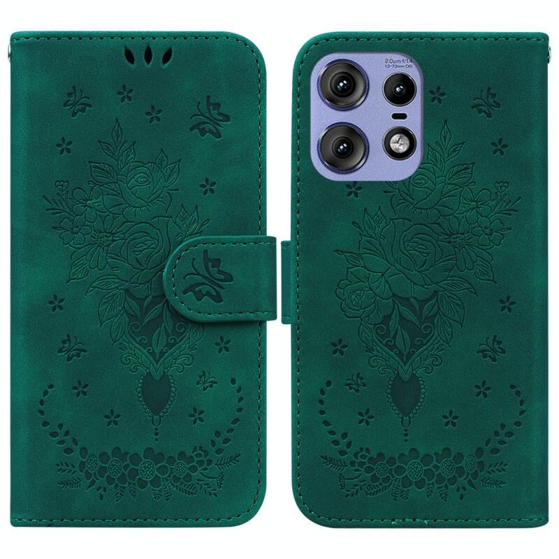 Για Motorola Edge 50 Pro πεταλούδα Rose ανάγλυφο δέρμα υπόθεση τηλεφώνου (πράσινο)