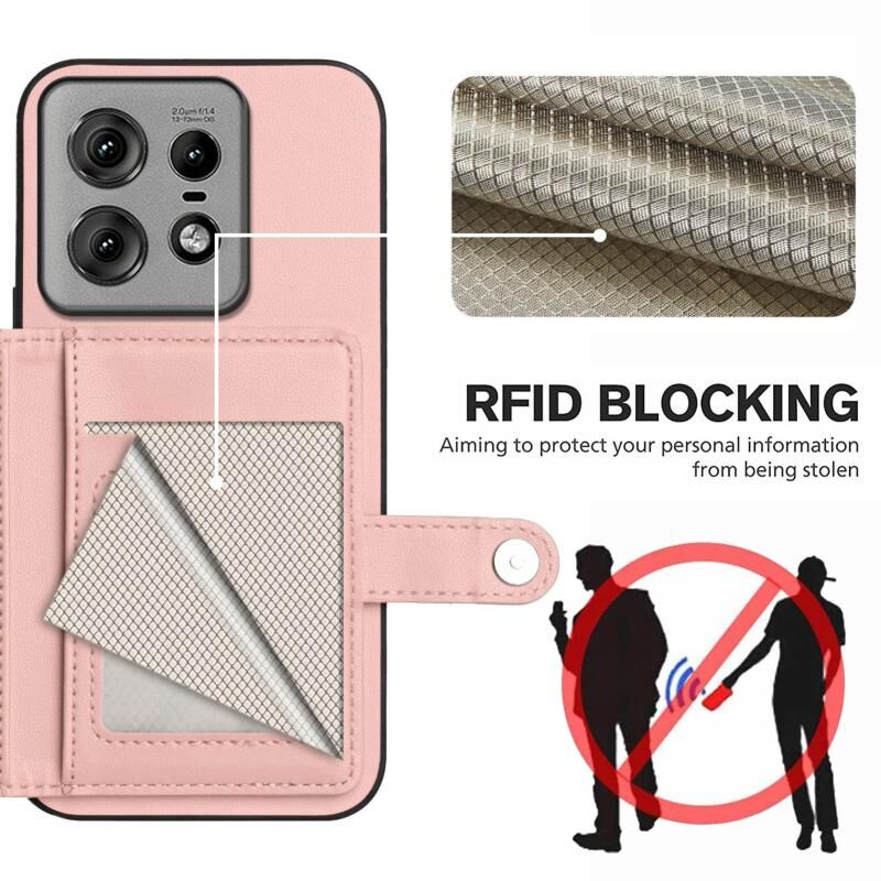 Θήκη κινητού τηλεφώνου για Motorola Edge 50 Pro με κάρτες και προστασία RFID κατά της κλοπής (Ροζ)