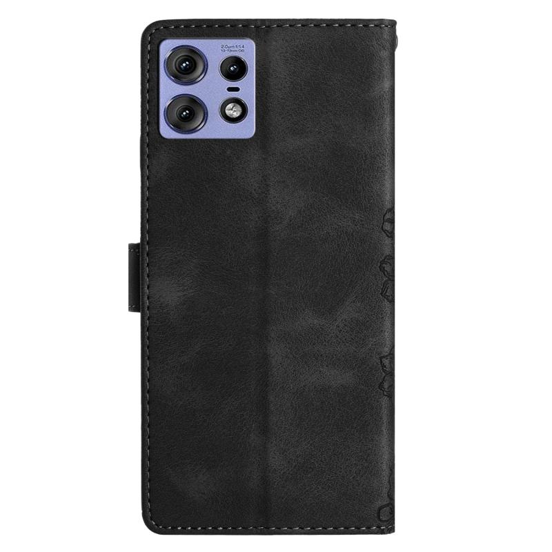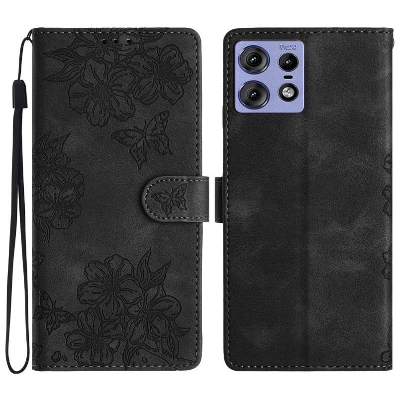 For Motorola Edge 50 Pro Cherry Blossom Butterfly Skin Feel Embossed PU Phone Case(Black)