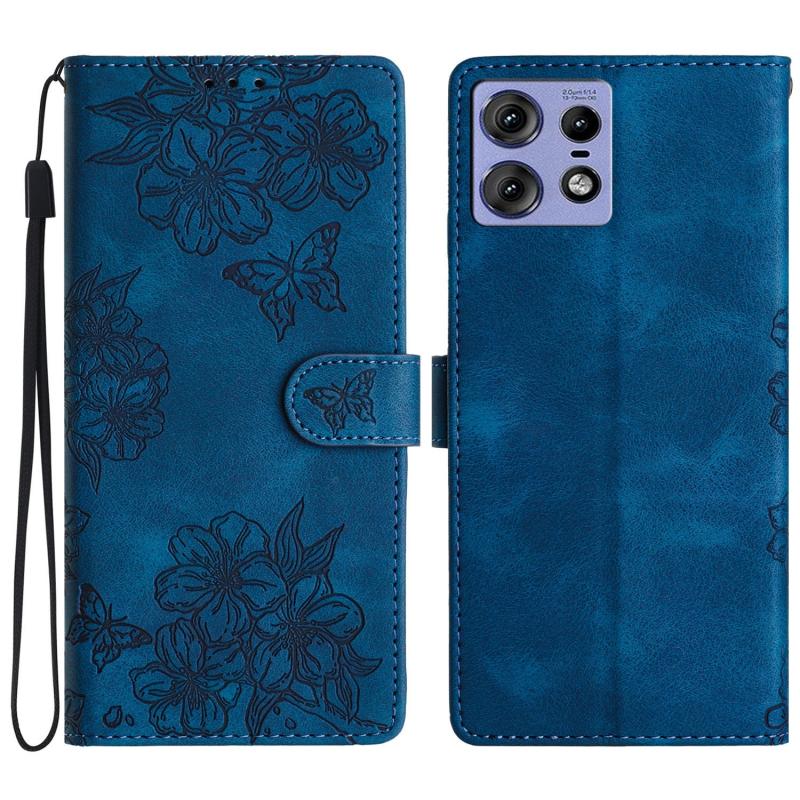 For Motorola Edge 50 Pro Cherry Blossom Butterfly Skin Feel Embossed PU Phone Case(Blue)