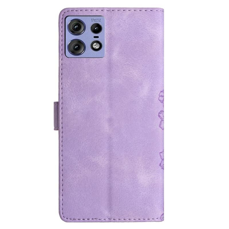 Θήκη κινητού τηλεφώνου Motorola Edge 50 Pro Cherry Blossom Butterfly Skin Feel Embossed PU (Κόκκινη)