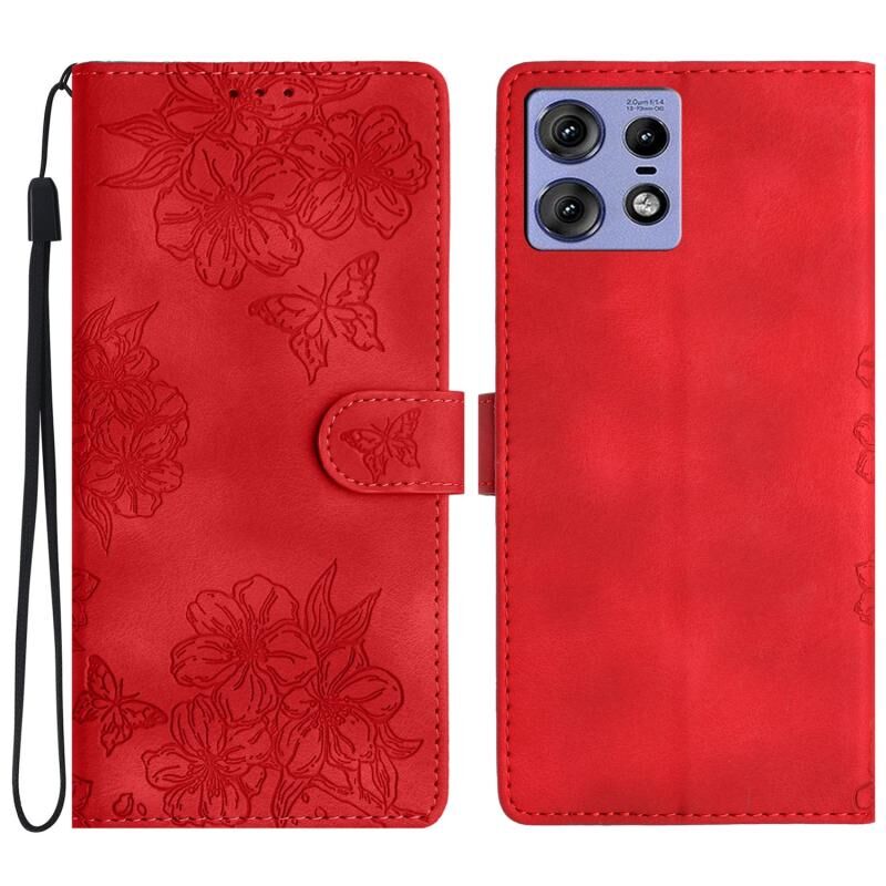 Θήκη κινητού τηλεφώνου Motorola Edge 50 Pro Cherry Blossom Butterfly Skin Feel Embossed PU (Κόκκινη)