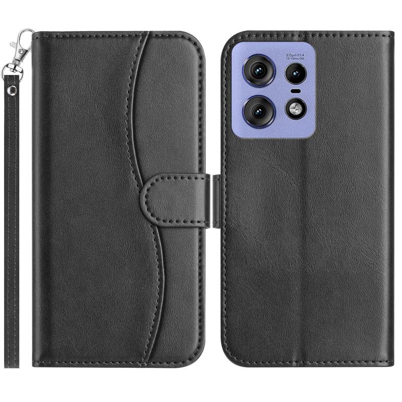 For Motorola Edge 50 Pro Dual-Folded S-shape Leather Phone Case(Black)