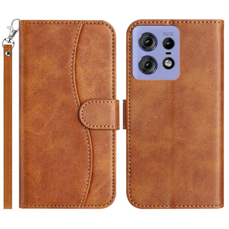Θήκη τηλεφώνου δερμάτινη διπλωμένη σε σχήμα S για Motorola Edge 50 Pro (Κόκκινο Ρόδι)