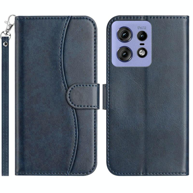 For Motorola Edge 50 Pro Dual-Folded S-shape Leather Phone Case(Navy Blue)