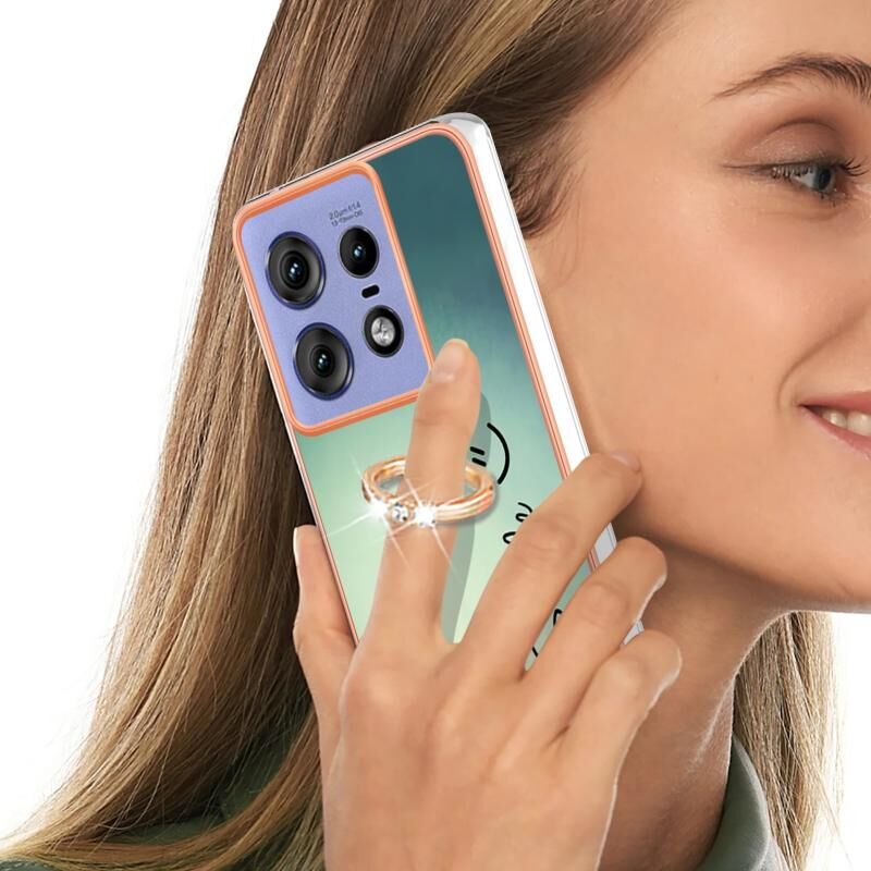 Θήκη τηλεφώνου με δακτύλιο στήριξης (Χαμόγελο) για Motorola Edge 50 Pro, με ηλεκτρολυτική επιμετάλλωση και διπλής όψης IMD.