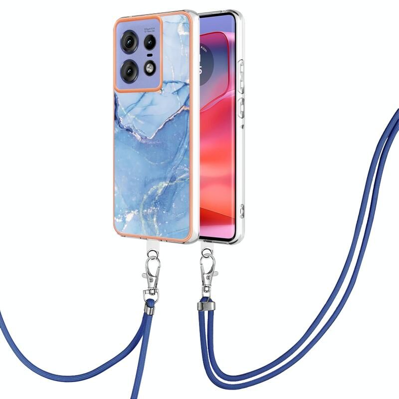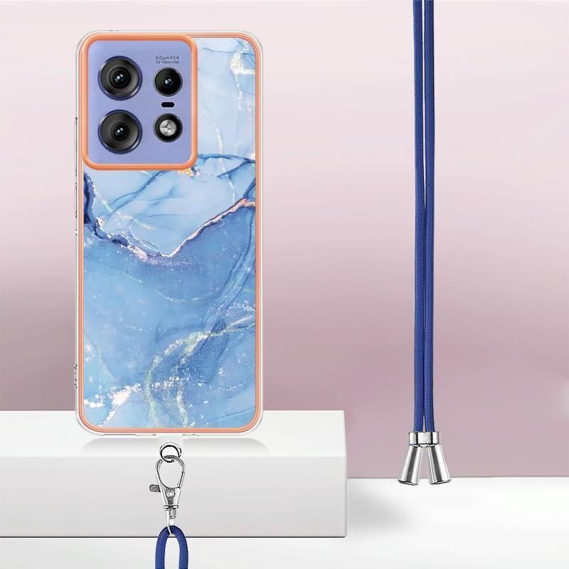 Θήκη τηλεφώνου με κορδόνι για Motorola Edge 50 Pro, επιμετάλλωση, σχέδιο μάρμαρου, διπλής όψης IMD (Χρυσό Ρόδι 015)