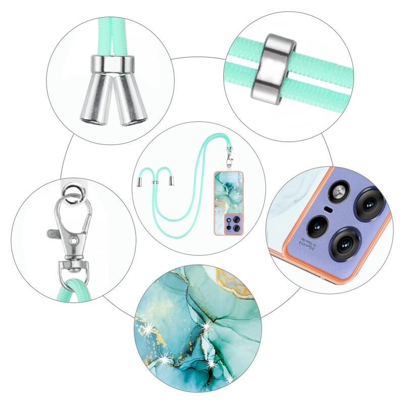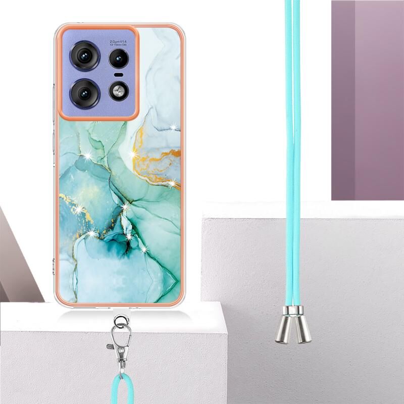 Θήκη τηλεφώνου με κορδόνι για Motorola Edge 50 Pro, επιμετάλλωση, σχέδιο μαρμάρου, διπλής όψης IMD (Μωβ 001)