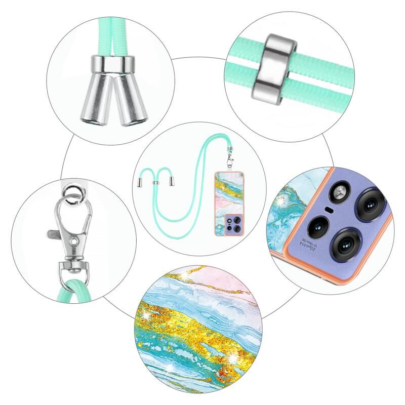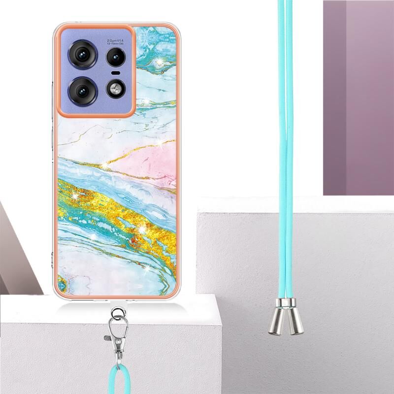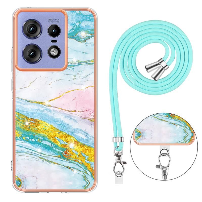 Θήκη τηλεφώνου με κορδόνι για Motorola Edge 50 Pro, επιμετάλλωση, σχέδιο μαρμάρου, διπλής όψης IMD (Μωβ 001)