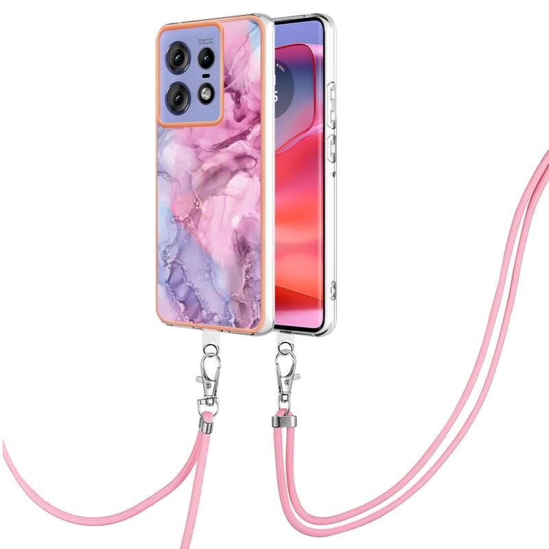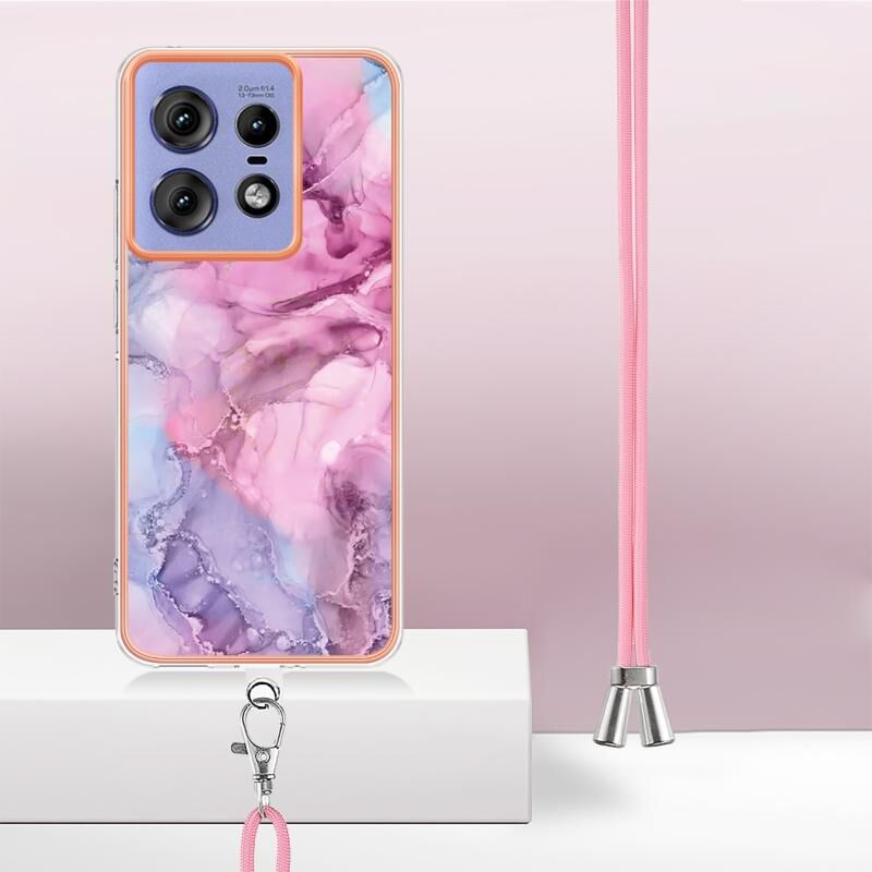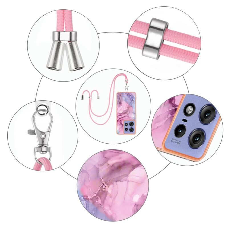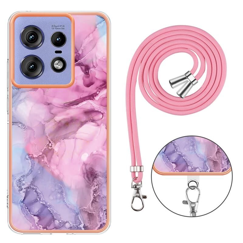 Θήκη τηλεφώνου με κορδόνι για Motorola Edge 50 Pro, επιμετάλλωση, σχέδιο μάρμαρου, διπλής όψης IMD (Χρυσό Ρόδι 015)