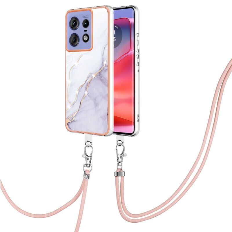 Θήκη τηλεφώνου με κορδόνι για Motorola Edge 50 Pro, επιμετάλλωση, σχέδιο μαρμάρου, διπλής όψης IMD (Μωβ 001)