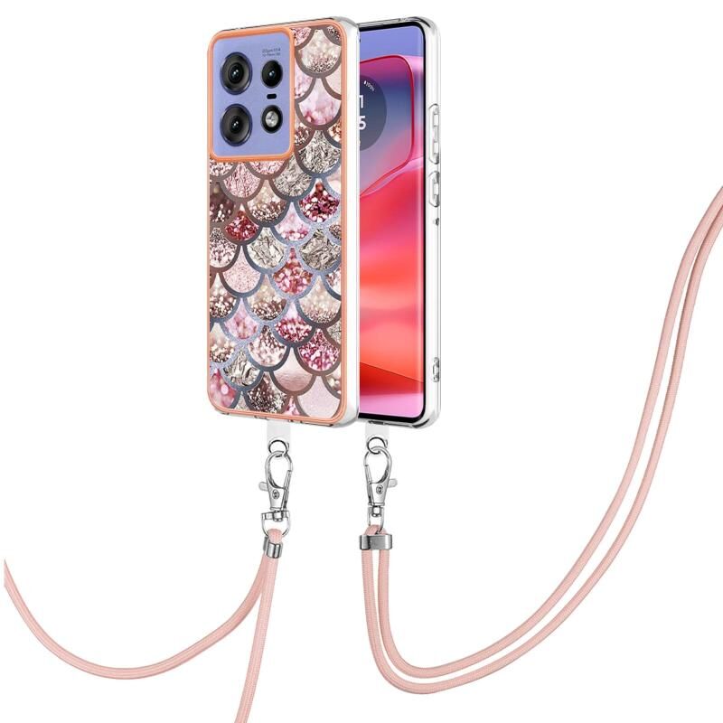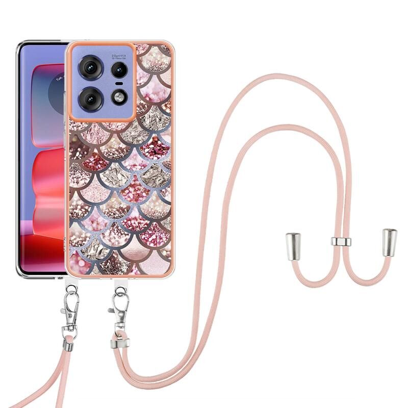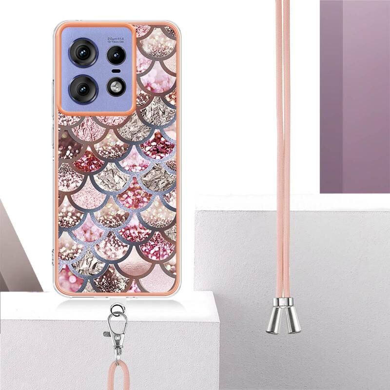 Θήκη προστασίας για Motorola Edge 50 Pro με ηλεκτρολυτική επιμετάλλωση, σχέδιο IMD, TPU, αντικραδασμική με λουρί λαιμού (Ροζ Λέπια)