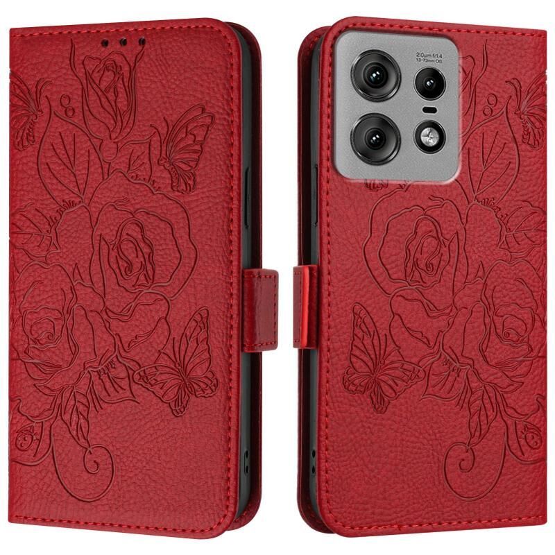 Για Motorola Edge 50 Pro Ανάγλυφο Rose RFID Anti-theft Δερμάτινη θήκη τηλεφώνου (Κόκκινο)
