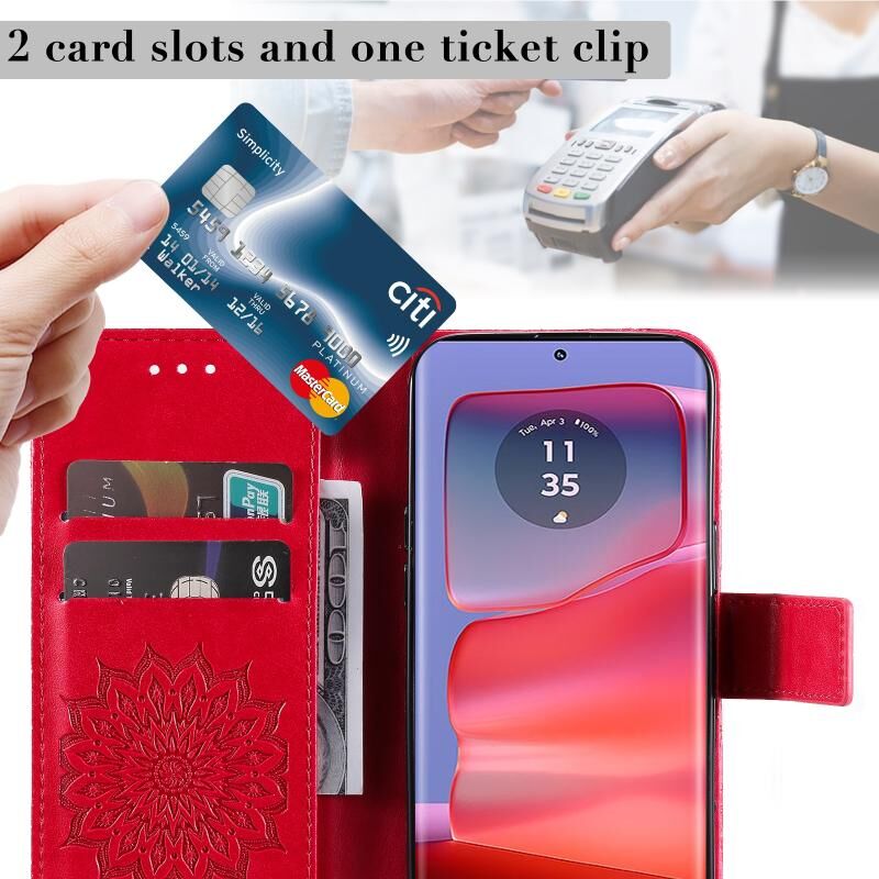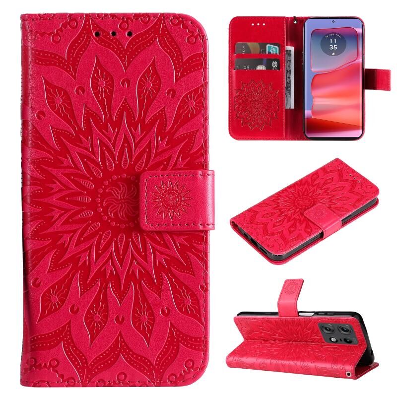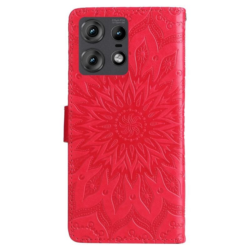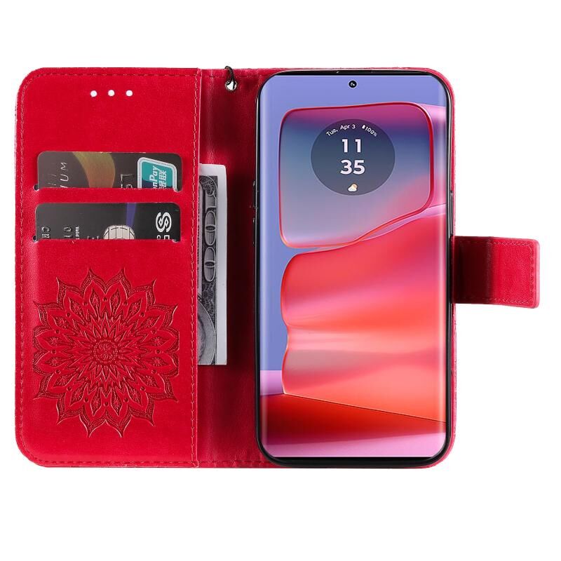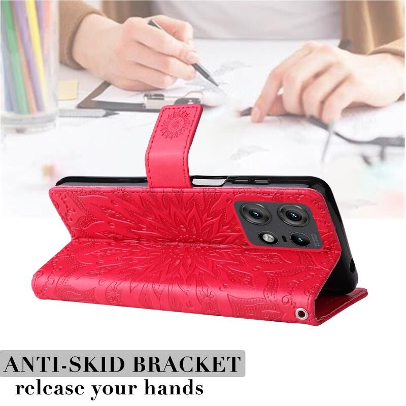 Θήκη τηλεφώνου από δέρμα με σχέδιο ηλιοτροπίου σε ανάγλυφο για Motorola Edge 50 Pro (Καφέ)