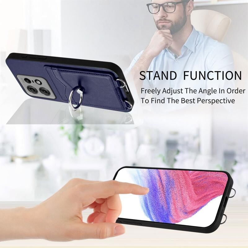 Για Motorola Edge 50 Pro EU Edition R20 Δαχτυλίδι κάτοχος κάρτας υπόθεση τηλεφώνου (Μπλε)