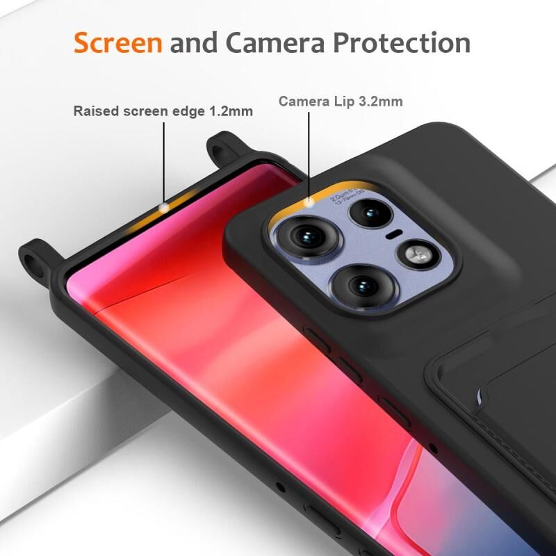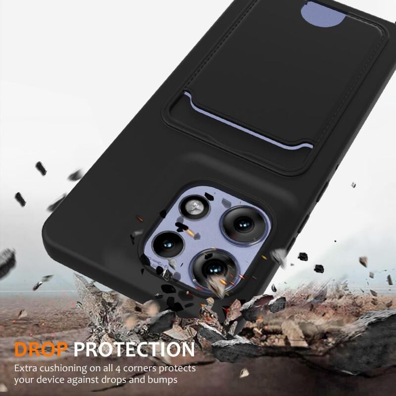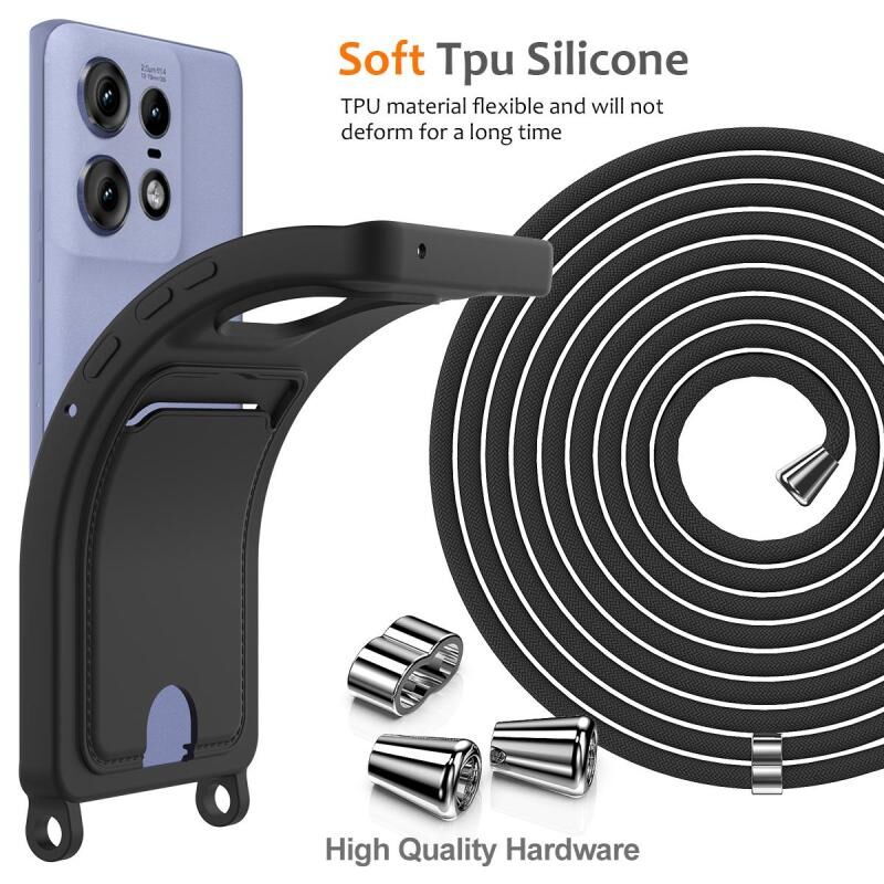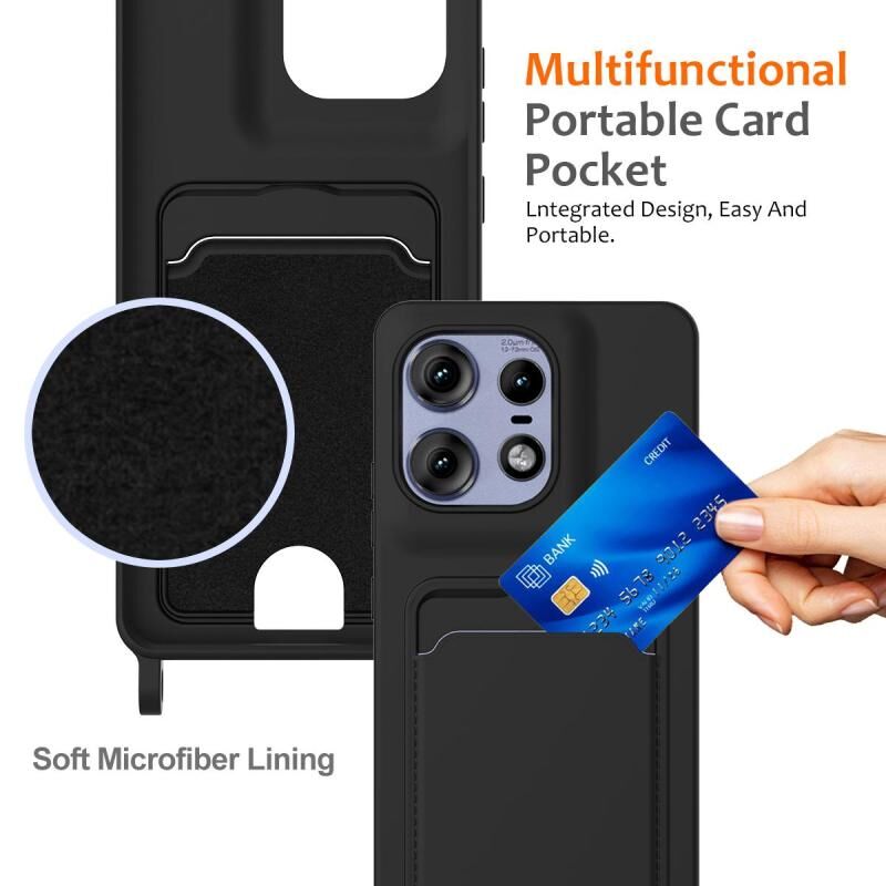 For Motorola Edge 50 Pro Integrated Card Bag Solid Color Liquid Silicone Phone Case with Lanyard(Black)