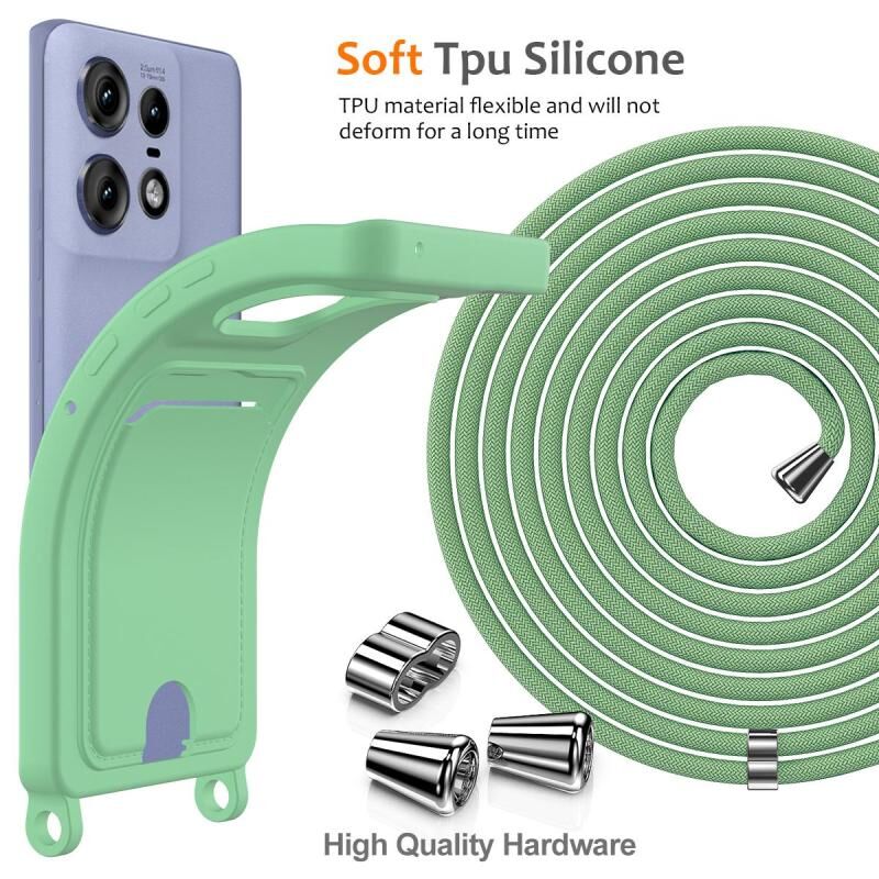 For Motorola Edge 50 Pro Integrated Card Bag Solid Color Liquid Silicone Phone Case with Lanyard(Green)