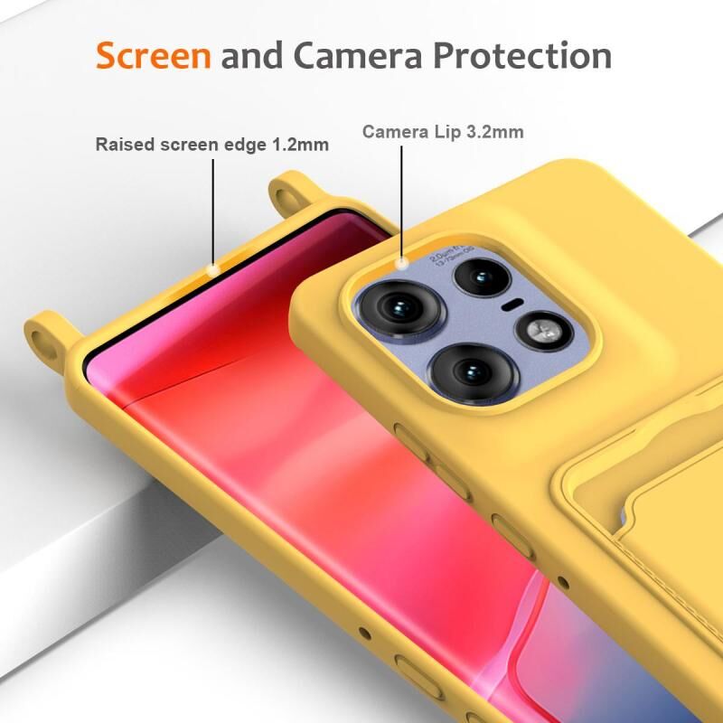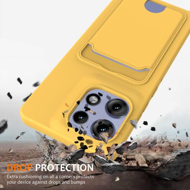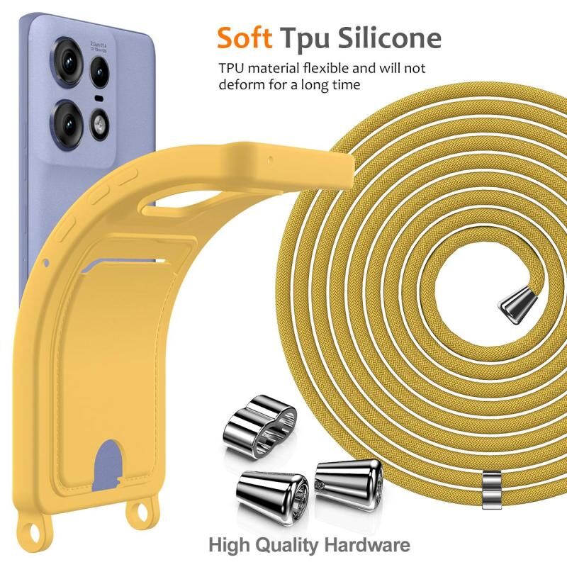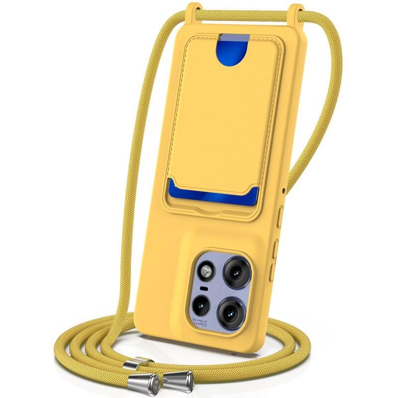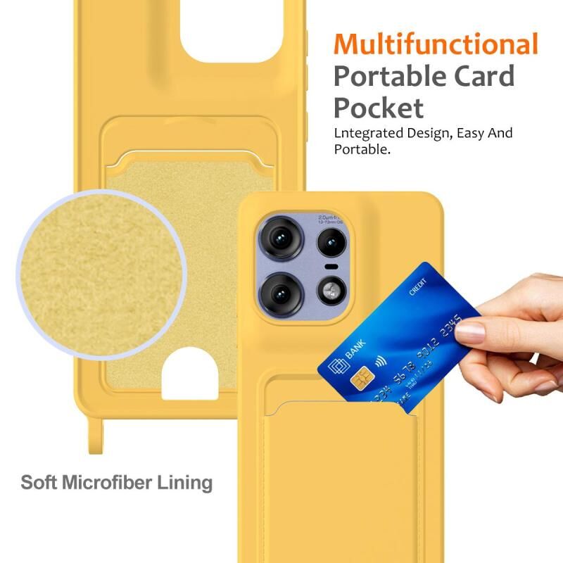 For Motorola Edge 50 Pro Integrated Card Bag Solid Color Liquid Silicone Phone Case with Lanyard(Yellow)