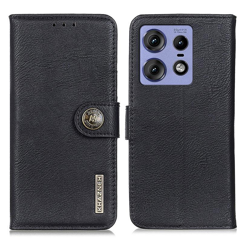 Θήκη τηλεφώνου δερμάτινη αναδιπλούμενη με υφή δέρματος αγελάδας KHAZNEH για Motorola Edge 50 Pro (Μαύρο)