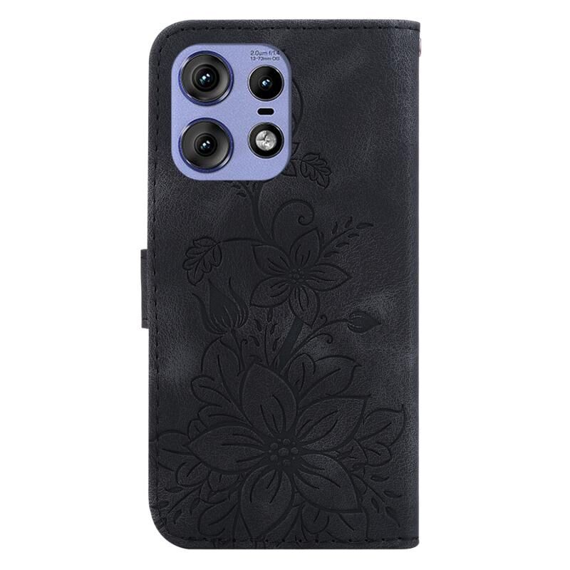Θήκη τηλεφώνου από δέρμα με ανάγλυφο Lily για Motorola Edge 50 Pro (Πράσινο)