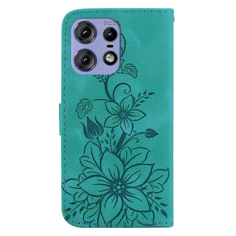 Θήκη τηλεφώνου από δέρμα με ανάγλυφο Lily για Motorola Edge 50 Pro (Πράσινο)