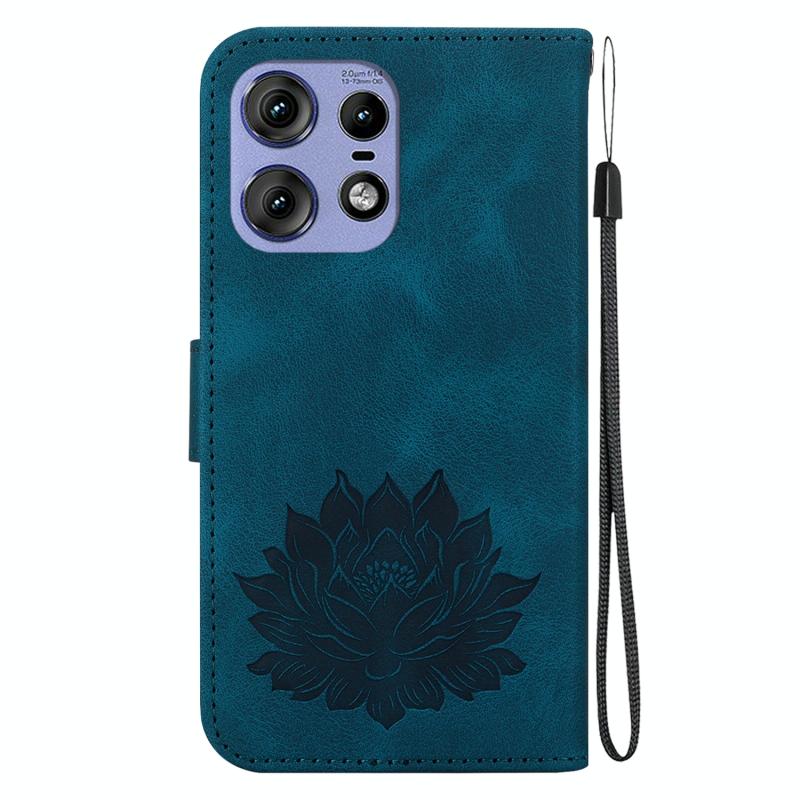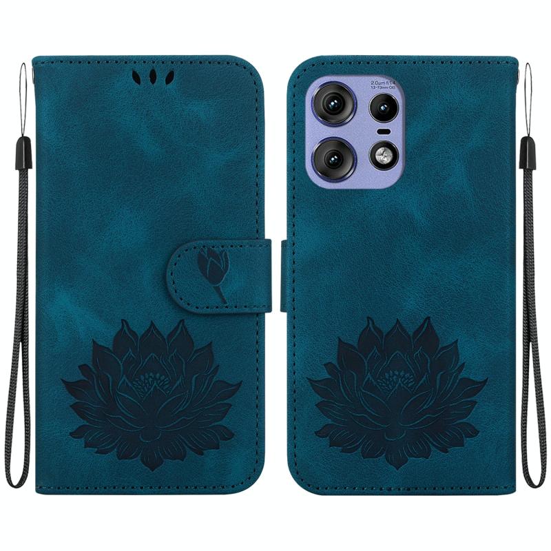 For Motorola Edge 50 Pro Lotus Embossed Leather Phone Case(Dark Blue)