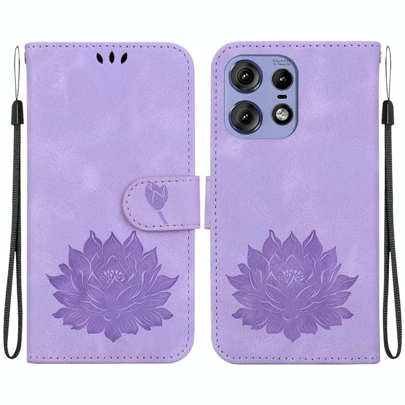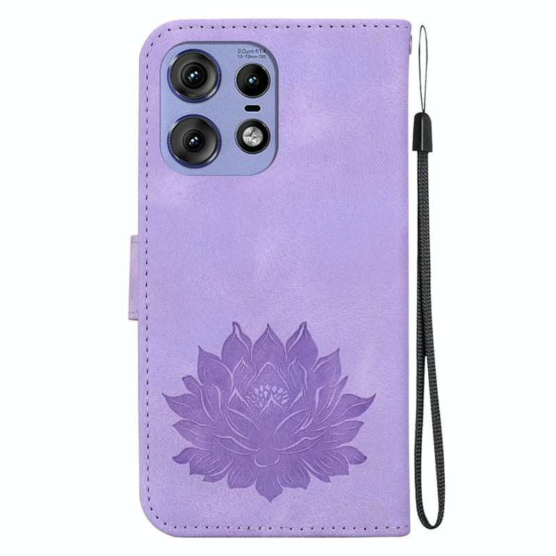 For Motorola Edge 50 Pro Lotus Embossed Leather Phone Case(Purple)