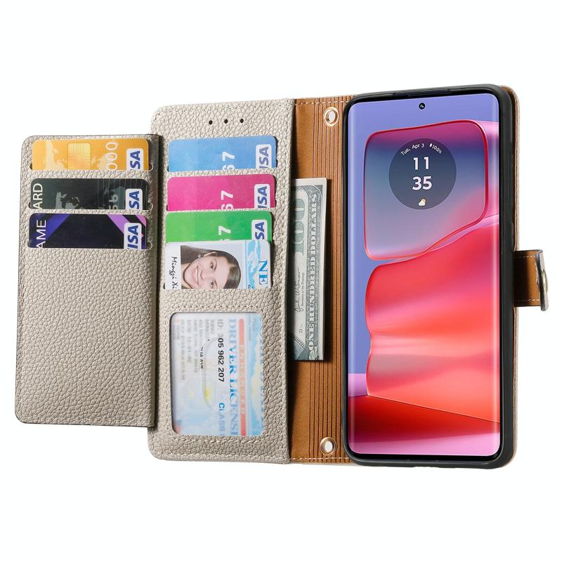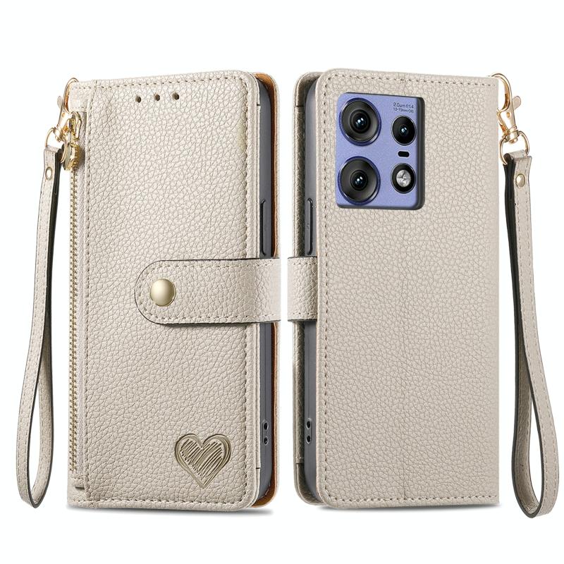 Για Motorola Edge 50 Pro Θήκη Δερμάτινη με Φερμουάρ και Λουρί. (Γκρι)
