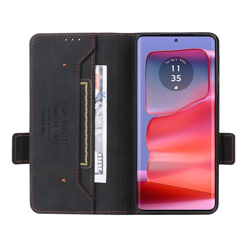 Για Motorola Edge 50 Pro Μαγνητικό κούμπωμα Δερμάτινη θήκη τηλεφώνου (Μαύρο)