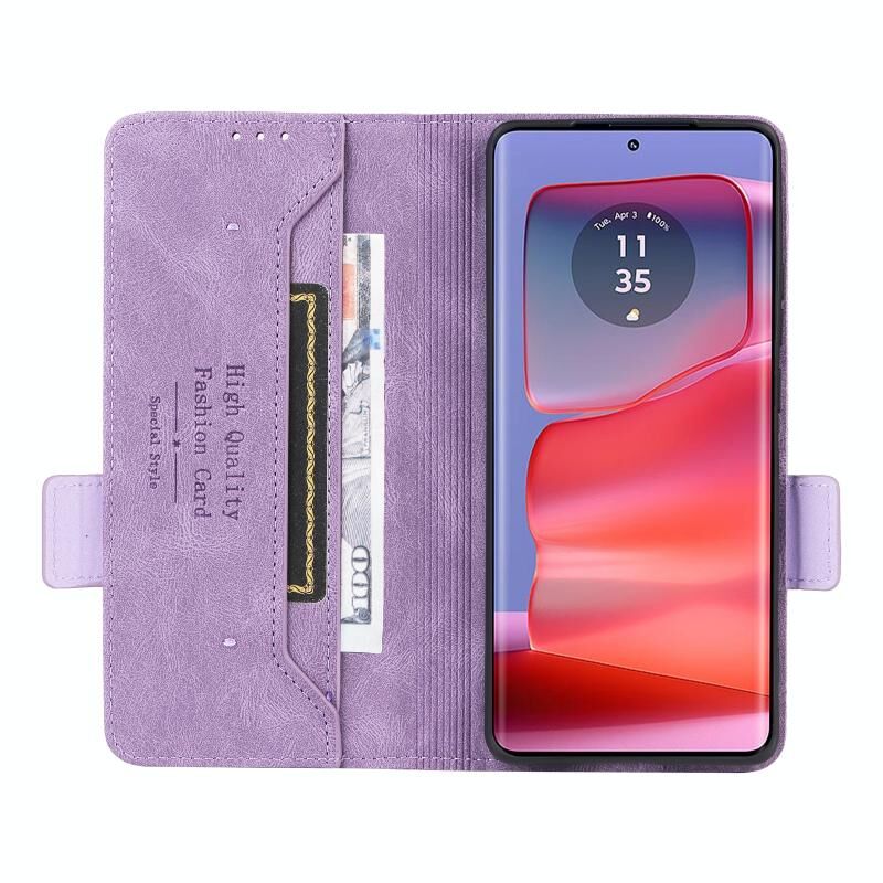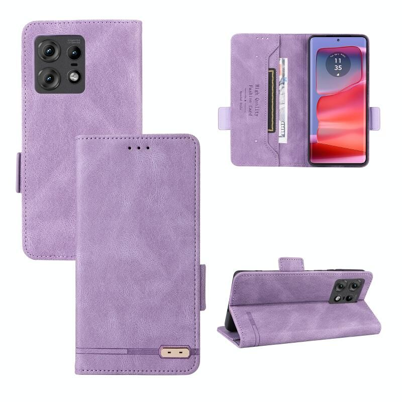 Για Motorola Edge 50 Pro Μαγνητικό κούμπωμα Δερμάτινη θήκη τηλεφώνου (μωβ)