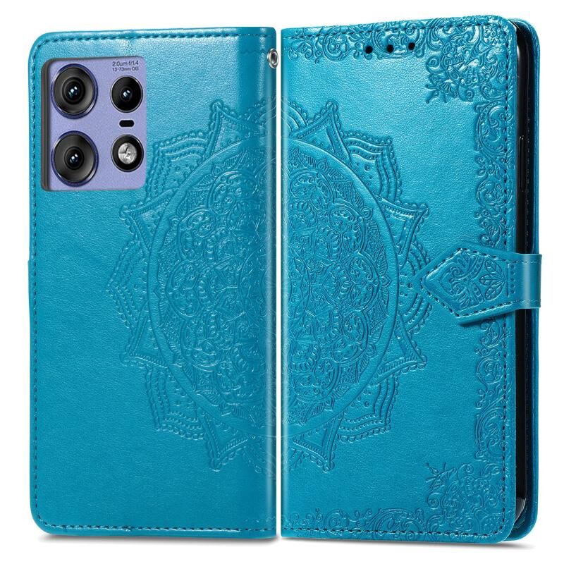 Θήκη τηλεφώνου από δέρμα με ανάγλυφο σχέδιο Mandala Flower για Motorola Edge 50 Pro (Χρυσό Ρόδι)
