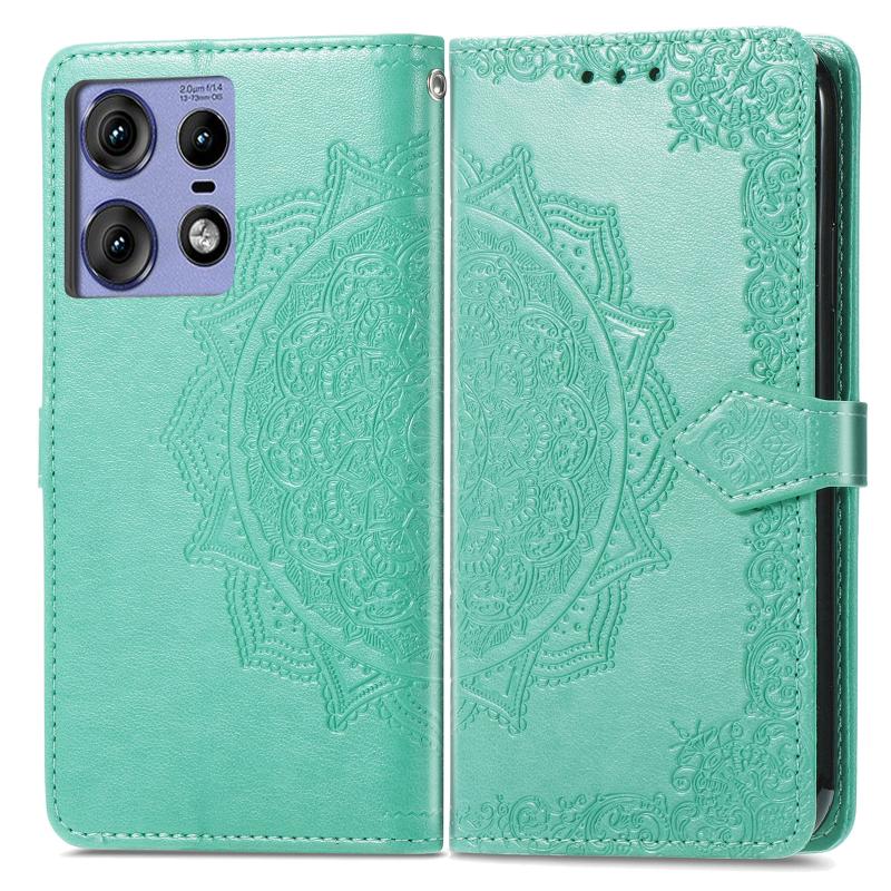 For Motorola Edge 50 Pro Mandala Flower Embossed Leather Phone Case(Green)