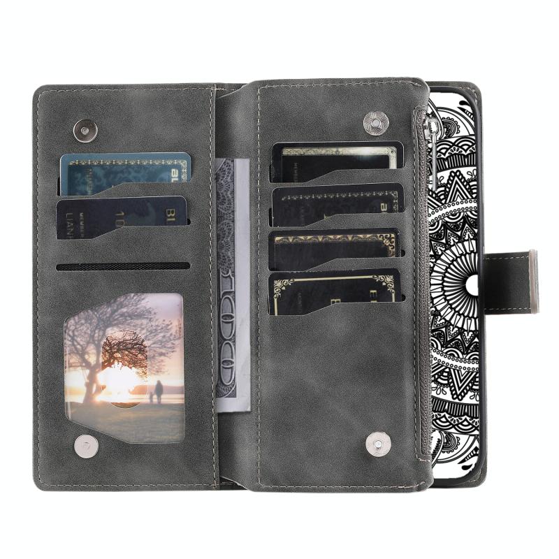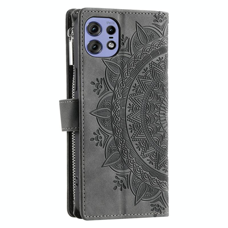 For Motorola Edge 50 Pro Multi-Card Totem Zipper Leather Phone Case(Grey)
