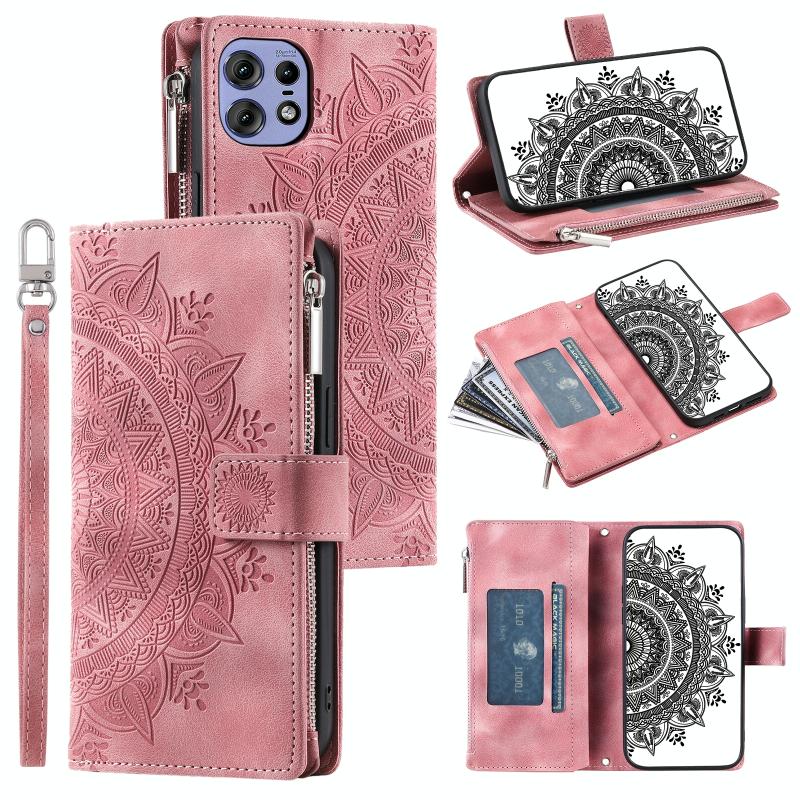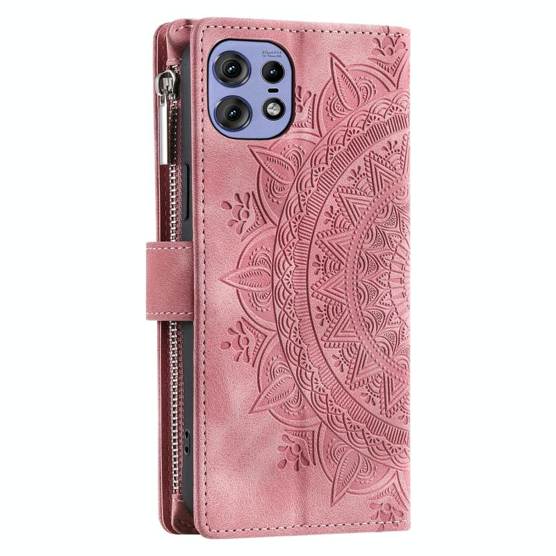 For Motorola Edge 50 Pro Multi-Card Totem Zipper Leather Phone Case(Pink)