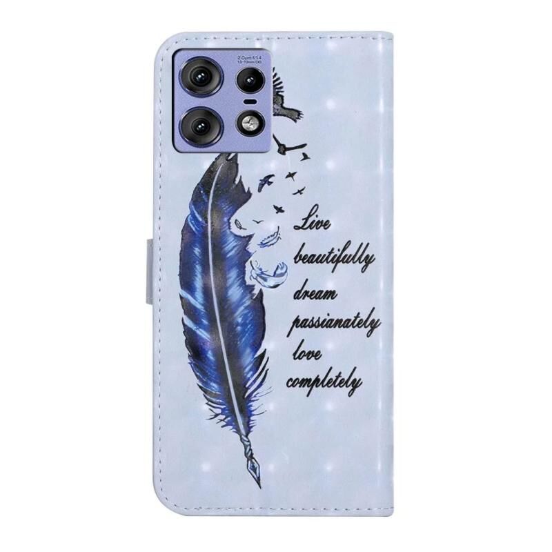 Θήκη τηλεφώνου δερμάτινη με ανάγλυφο σχέδιο λαδιού 3D για Motorola Edge 50 Pro (Μπλε Πεταλούδες)