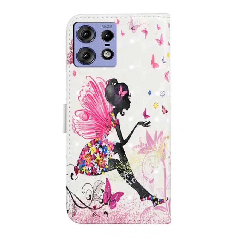 Θήκη τηλεφώνου δερμάτινη με ανάγλυφο σχέδιο λαδιού 3D για Motorola Edge 50 Pro (Νεράιδα Λουλουδιών)