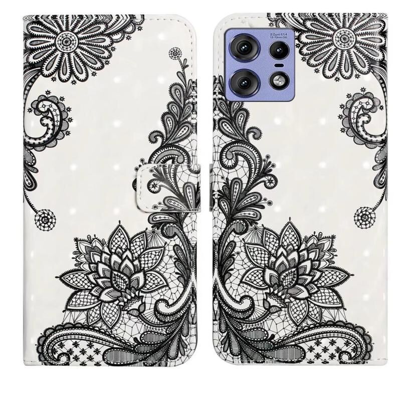 Θήκη τηλεφώνου δερμάτινη με ανάγλυφο σχέδιο λαδιού 3D για Motorola Edge 50 Pro (Δαντέλα Λουλούδι)