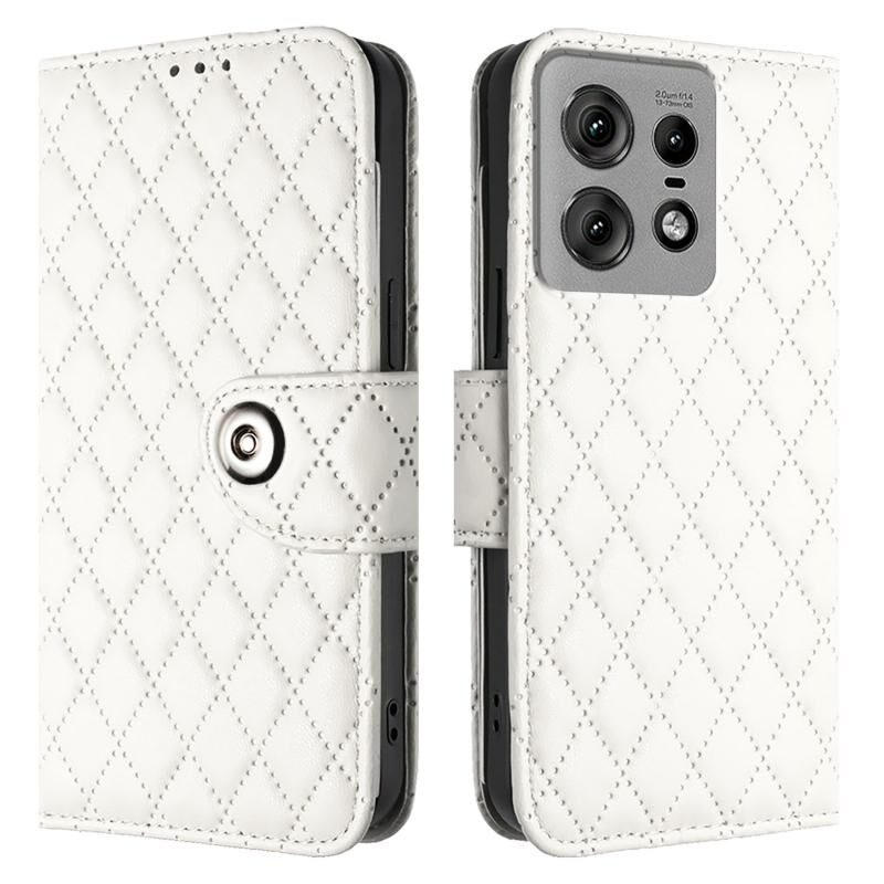 Για Motorola Edge 50 Pro Rhombic Texture Flip δερμάτινη θήκη τηλεφώνου με κορδόνι (λευκό)