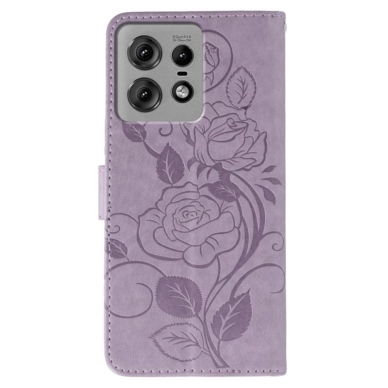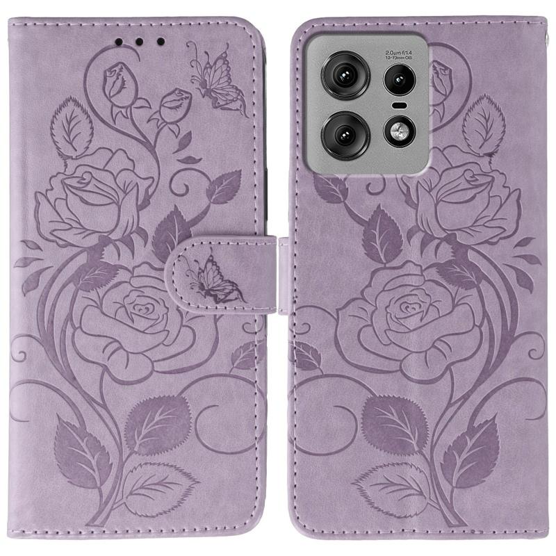 Θήκη τηλεφώνου από δέρμα με ανάγλυφο σχέδιο πεταλούδας Rose για Motorola Edge 50 Pro (Μπλε)